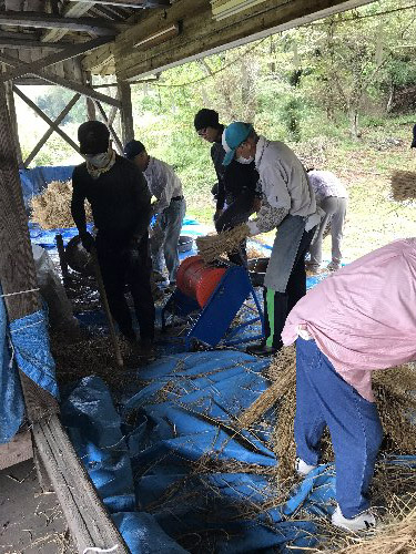 令和6年(2024年)注連縄用藁のほぐし作業